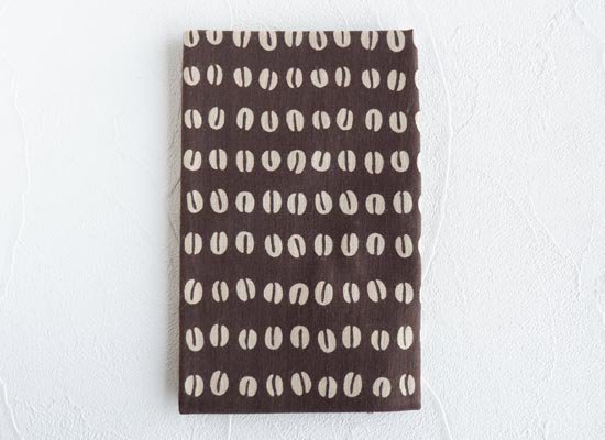 かまわぬファンにはたまらない、圧倒的人気を誇る定番てぬぐい「コーヒー豆」のモチーフを使っています。