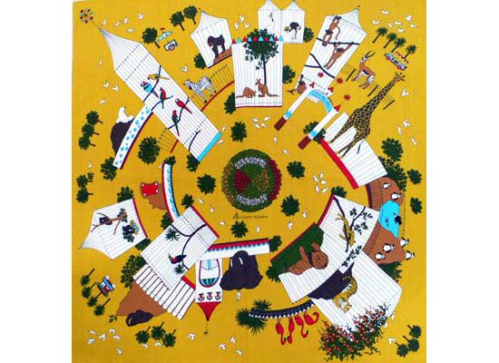こちらの風呂敷は結んでバッグにすると、ぐるっと「動物園」「遊園地」が現れるようにデザインされていて、楽しいですよ!